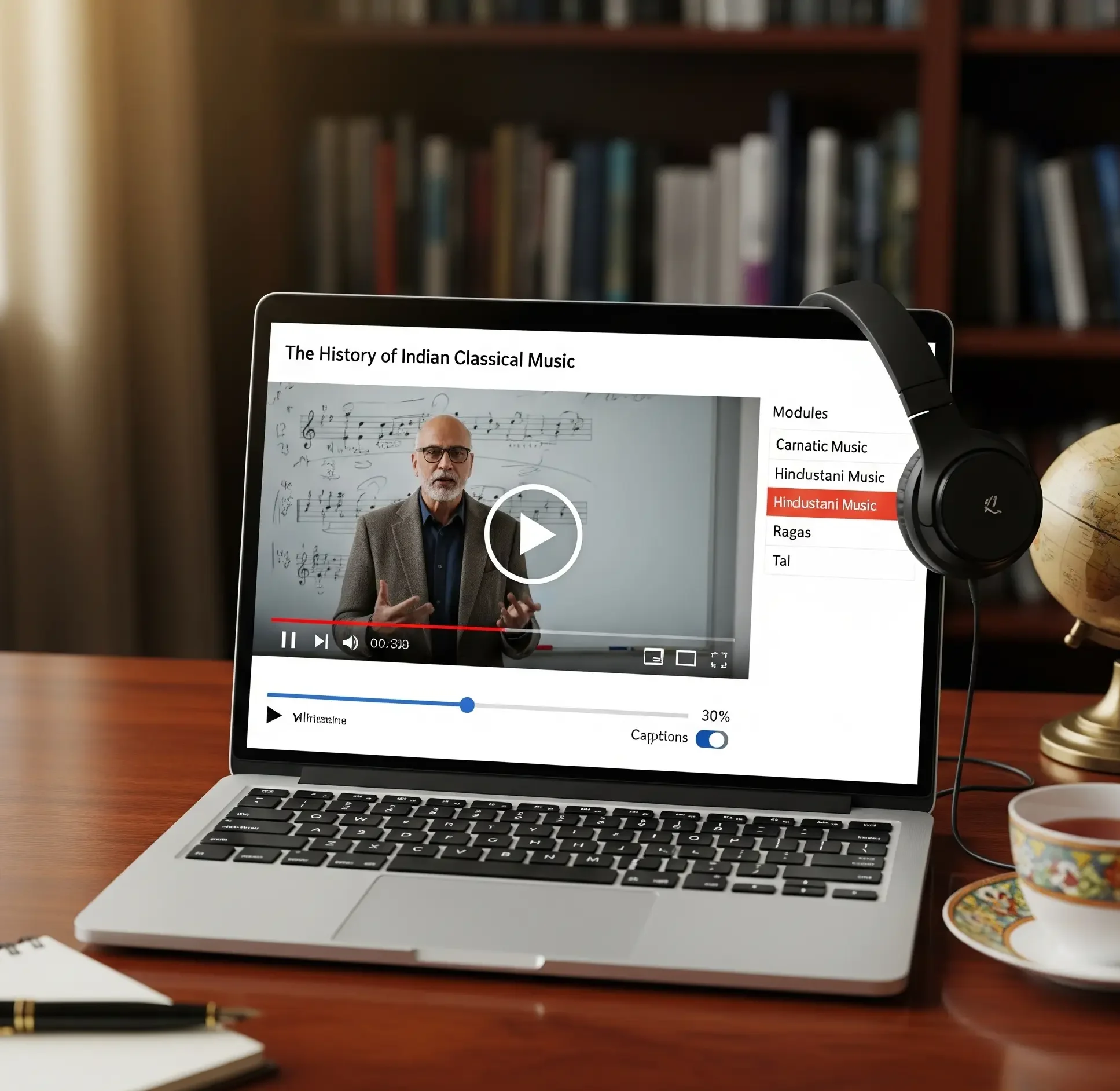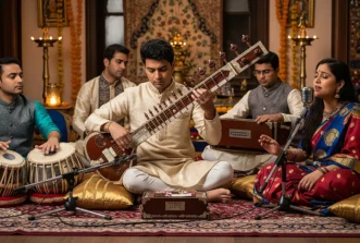 Master the art of Hindustani vocals with step-by-step training in swaras, ragas, and voice culture for a strong classical foundation